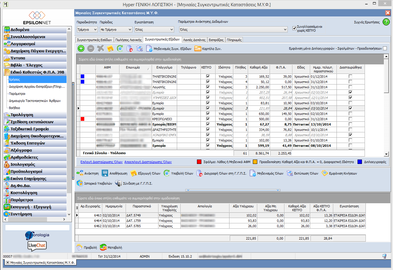 Πλήρως εναρμονισμένη στις διατάξεις του νέου Κ.Φ.Α.Σ, με όλες τις εκτυπώσεις και καταστάσεις που προβλέπονται και ένα μεγάλο αριθμό πληροφοριακών αναφορών. Αυτόματη online αναβάθμιση με όλες τις Φορολογικές Μεταρρυθμίσεις και με την επιμέλεια της Επιστημονική Ομάδας της Epsilon Net. Καλύπτει πλήρως τις εξειδικευμένες περιπτώσεις όπως τουριστικά γραφεία, επιχειρήσεις που υπάγονται στο σύστημα Ήφαιστος, εταιρείες με οικοδομοτεχνικά έργα κλπ